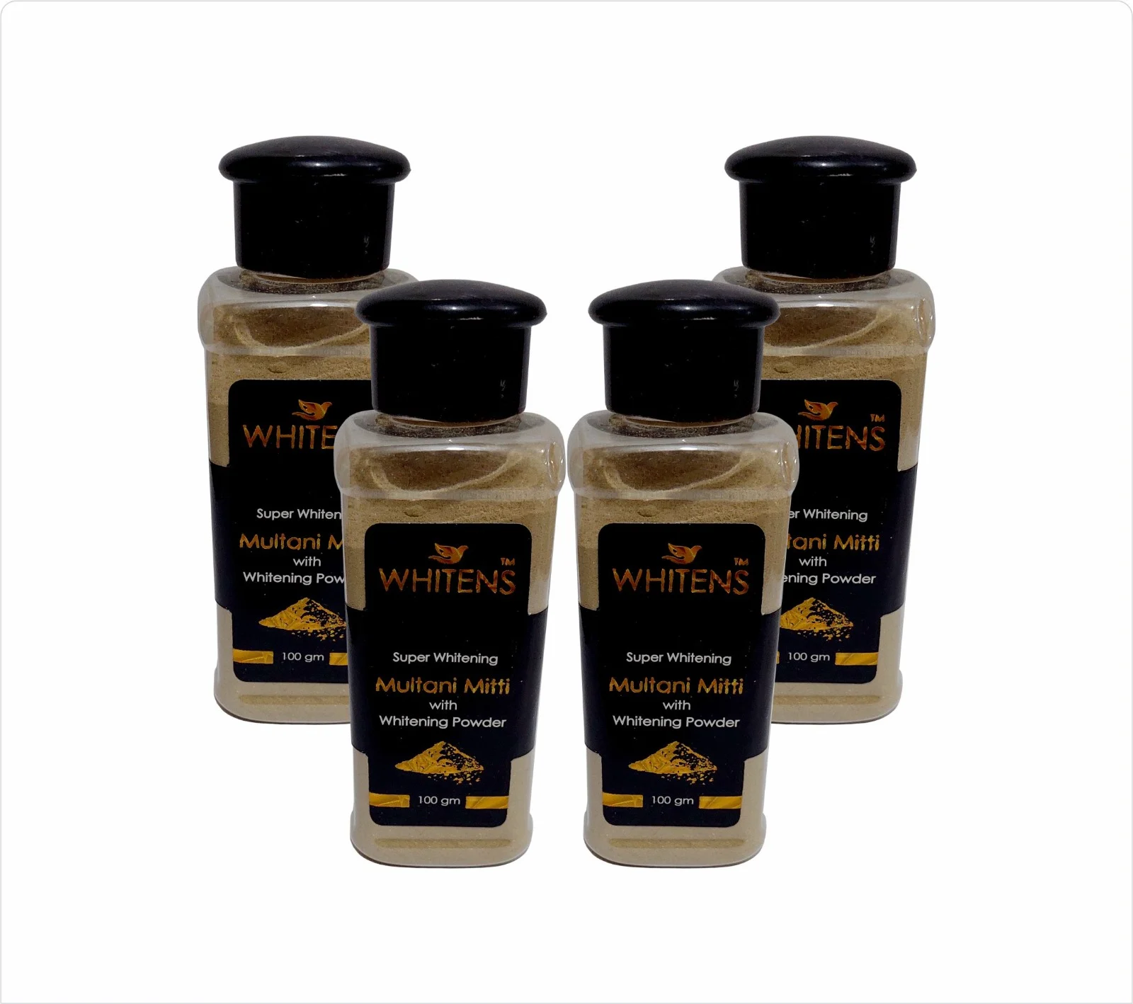 Whitens Multani Mitti (4Pc) is a specially formulated clay mask that targets fairness, acne, pores, and skin lifting—delivering visible results in just 12 days.