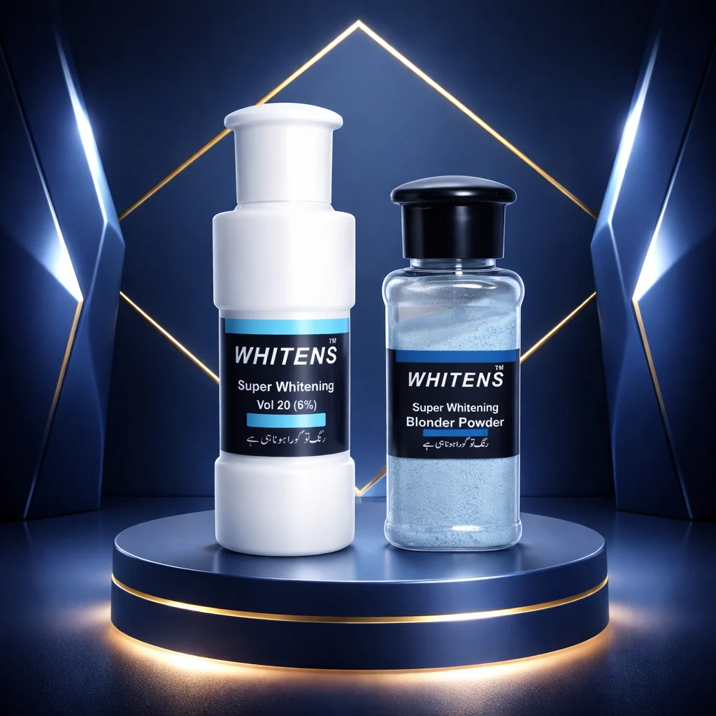 Take 3 table spoon of vol20 & 1 table spoon of blonder powder in container well mix n apply on face, hand & neck and wash after 20 minutes or after results.